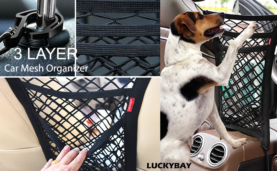 Luckybay 3-Layer Car Mesh Organizer – Seat Back Net Barrier for Pets & Kids, Between Seat Purse Holder & Universal Car Storage Mesh for SUV/Truck