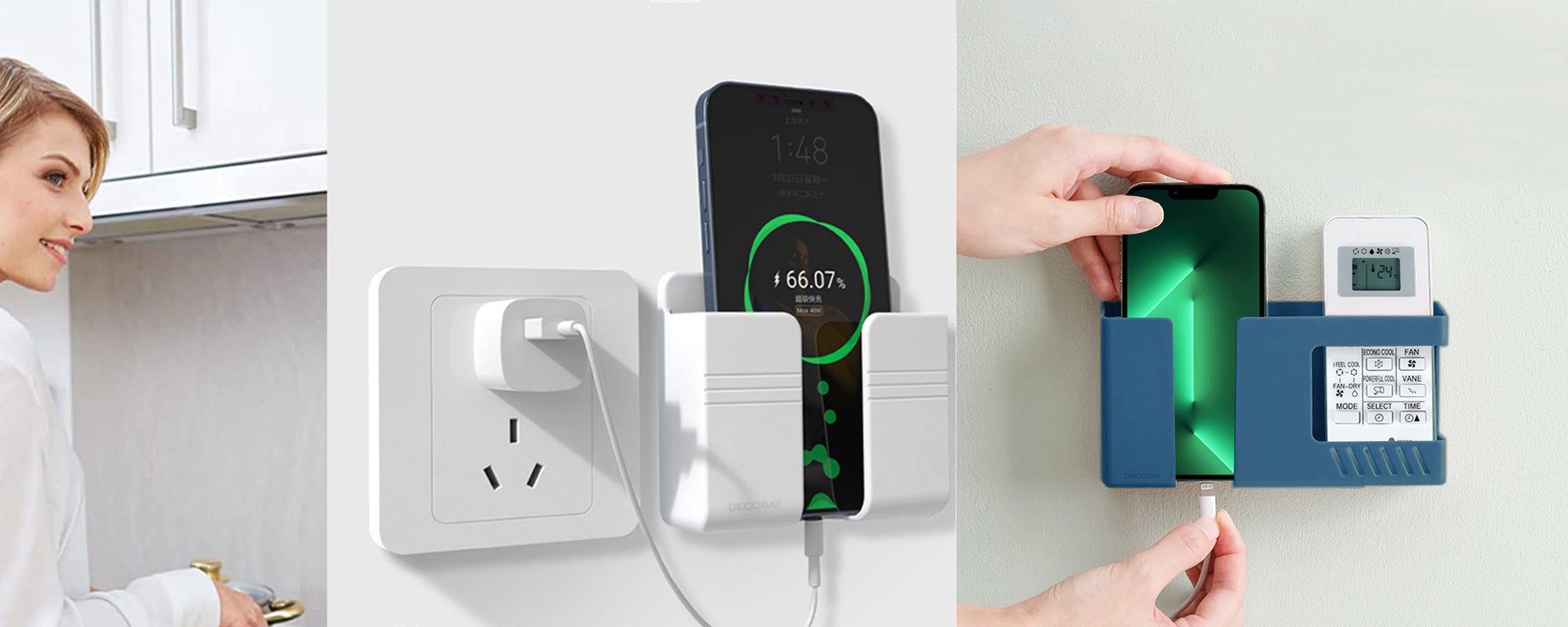 Luckybay D3 Wall Mount Phone Holder – Punch-Free Adhesive Storage Box for Phone Charging, TV Remote & Accessories – Bedside or Multipurpose Organizer